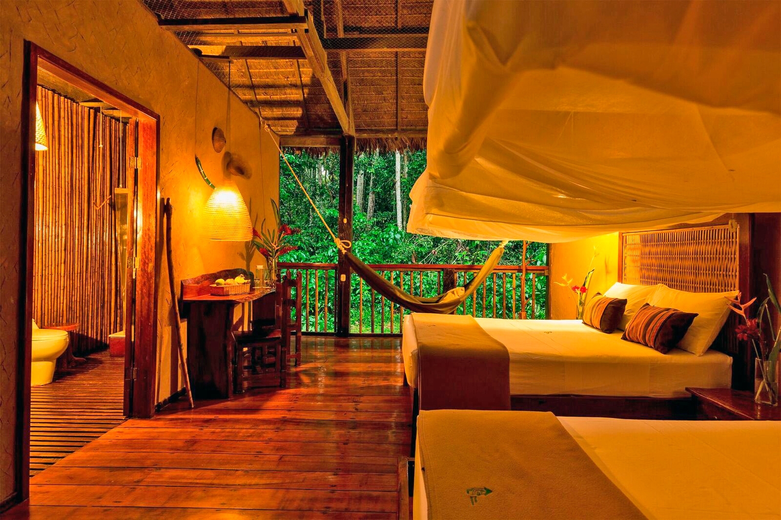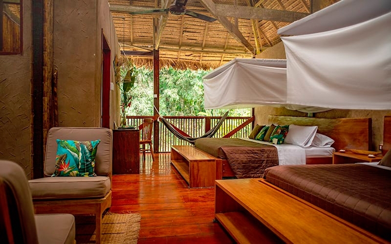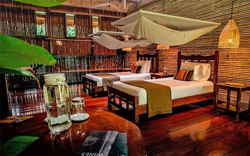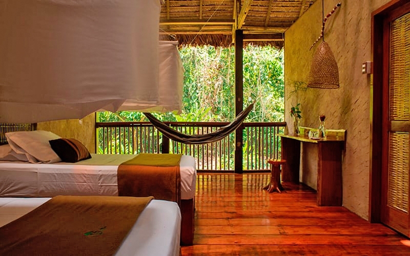 Posada Amazonas is a rustic 30 bedroom first-class community partnership eco-lodge that is jointly owned with the Ese-Eja community of Infierno. Each room has a private bathroom with hot shower. Prices given are for our Superior rooms with room upgrades available at extra cost.